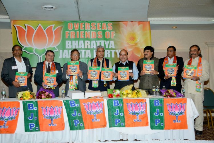 Overseas Friends of BJP's Nationcal Council Meeting was held in North Brunswick, NJ from September 14th to 16th. Attendees include Shri Ram Lal Gupta, National General Secretary (Org), BJP, Shri Vijay Jolly, Overseas Convener of the foreign affairs cell, BJP and Gajendra Solanki, Co-convenor, Cultural Cell, BJP. Photocredit: Shivakumar Chikine