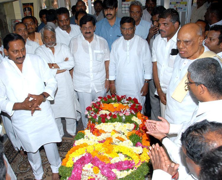 Chief Minister N.Kiran Kumar Reddy, Governor of Tamilnadu K.Rosaiah pays homage to departed freedom fighter and former minister Konda Laxman Bapuji at Hyderabad on Friday.