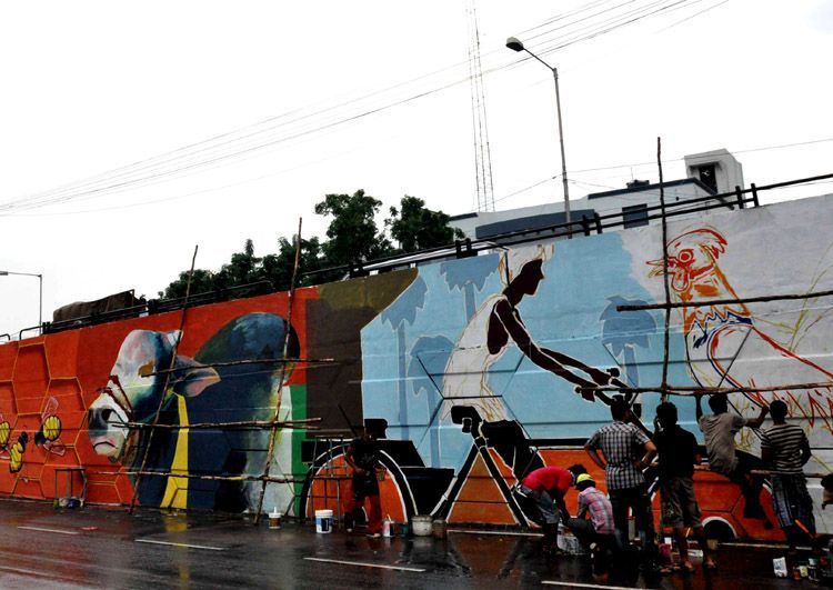 Students of JNTU College of Fine Arts beautifully paints Masab Tank flyover for COP-11 - INN Photos