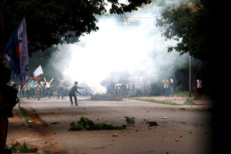 Students of Osmania University clash with the city police after the later foiled Student JAC's rally here on Thursday - INN Photos