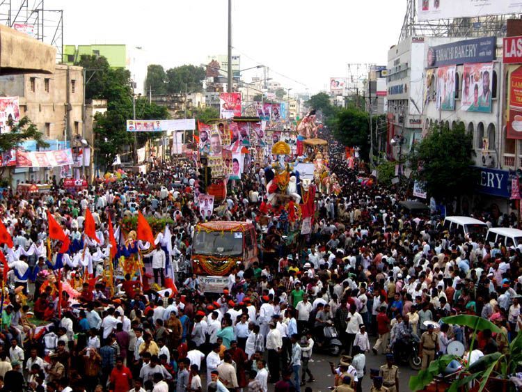 A view of Ganesh procession from Maozamjahi Market here on Saturday - INN Photos