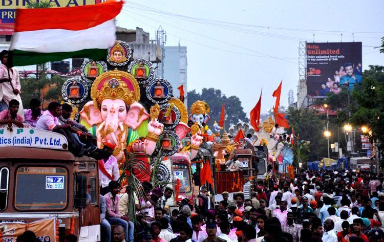 A view of Ganesh procession from Maozamjahi Market here on Saturday - INN Photos