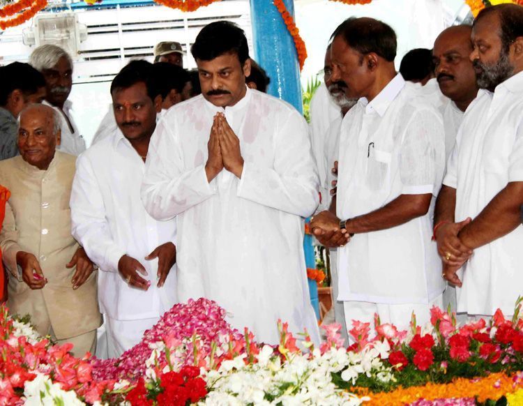 Congress MP Cheranjeevi along with other ministers and Congress leaders pays floral tribute to Mahatma Gandhi on the occasion of Gandhi Jayanti at Bapu Ghat Langer house here on on 2nd October. - INN PHOTOS