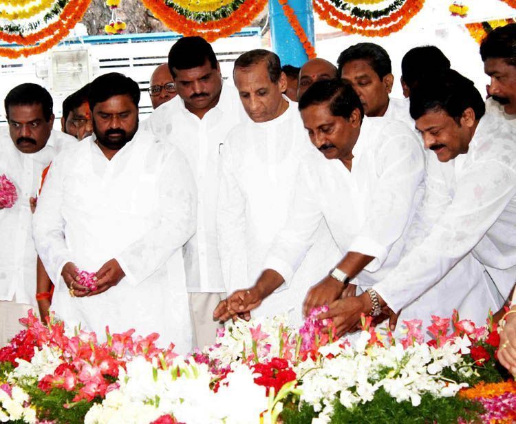 Governor ESL Narshimhan, Chief Minister N Kiran Kumar Reddy, Congress MP Cheranjeevi along with other ministers and Congress leaders pays floral tribute to Mahatma Gandhi on the occasion of Gandhi Jayanti at Bapu Ghat Langer house here on on 2nd October. - INN PHOTOS