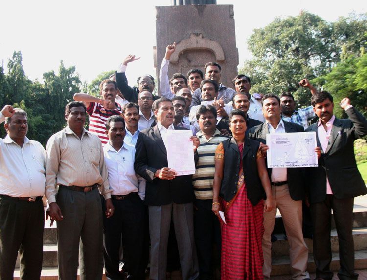 Members of Telangana Advocates JAC protest before Gun Park here on Sunday demanding that Prime Minister Dr Manmohan Singh visit Hyderabad only after announcing decision on separate Telangana - INN Photos