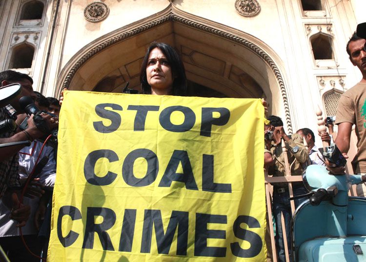 Animal Rights activist Amala Akkineni joins the Greenpeace protest at historic Charminar here by unfurling a banner on the monument on Monday demanding protection of forests from coal mining - INN Photos
