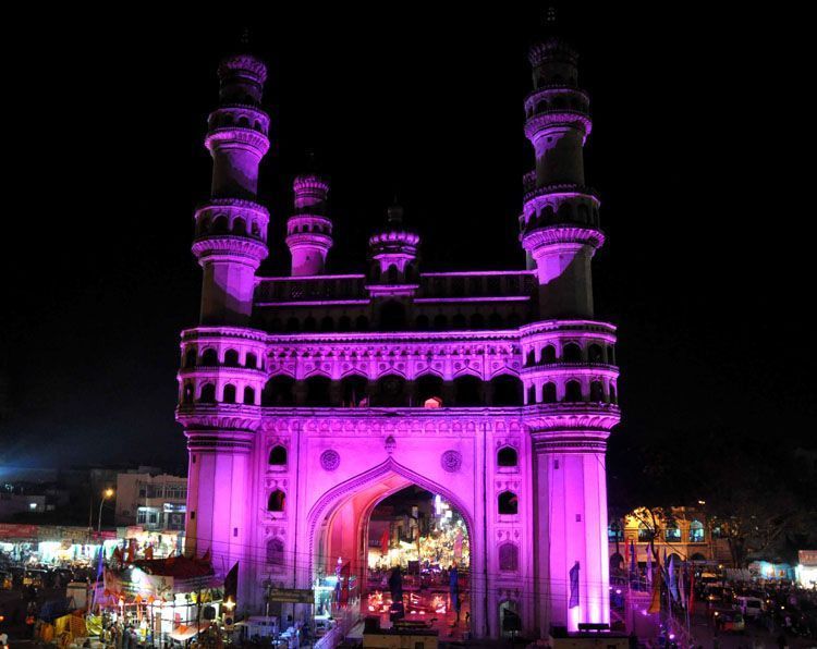 Charminar was lit in pink colour to mark the International Day of Girl on Thursaday - INN Photos
