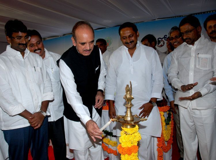 Union Minister for Health Ghulam Nabi Azad lighting a lamp to mark the inauguration of AROGYA health fare at Nampally in Hyderabad on Friday. Chief Minister N.Kiran Kumar Reddy, Ministers DL Ravindra Reddy, Kondru Murali Mohan, Danam Nagender looks on.
