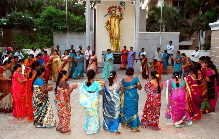 TDP Mahila Wing activists play Bathukamma at NTR Trust Bhavan here on Thursday - INN Photos