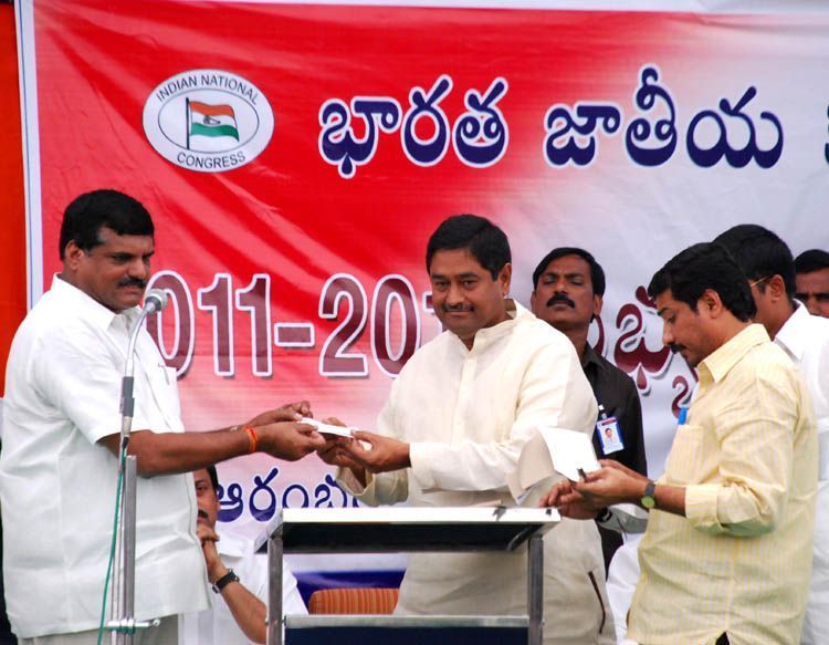 Minister Dharmana Prasada Rao being issued membership by PCC president Botsa Satyanarayana at the launch event of Congress party's membership drive at Gandhi Bhavan here on Thursday.