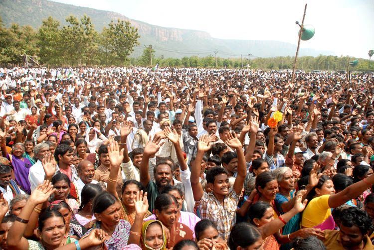 YSR Congress president YS Jaganmohan Reddy's sister Sharmila begins her marathon padayatra- Maro Praja Prasthanam amidst massive crowd at YSR's family estate in Idupulapaya of Kadapa district on Thursday. Sharmila's mother and YSRCP honorary president YS Vijayamma formally launched the yatra at a meeting held in the estates.