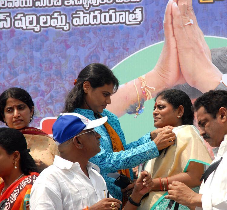 YSR Congress president YS Jaganmohan Reddy's sister Sharmila begins her marathon padayatra- Maro Praja Prasthanam amidst massive crowd at YSR's family estate in Idupulapaya of Kadapa district on Thursday. Sharmila's mother and YSRCP honorary president YS Vijayamma formally launched the yatra at a meeting held in the estates.