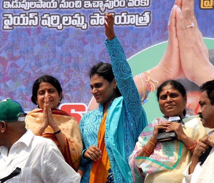 YSR Congress president YS Jaganmohan Reddy's sister Sharmila begins her marathon padayatra- Maro Praja Prasthanam amidst massive crowd at YSR's family estate in Idupulapaya of Kadapa district on Thursday. Sharmila's mother and YSRCP honorary president YS Vijayamma formally launched the yatra at a meeting held in the estates.