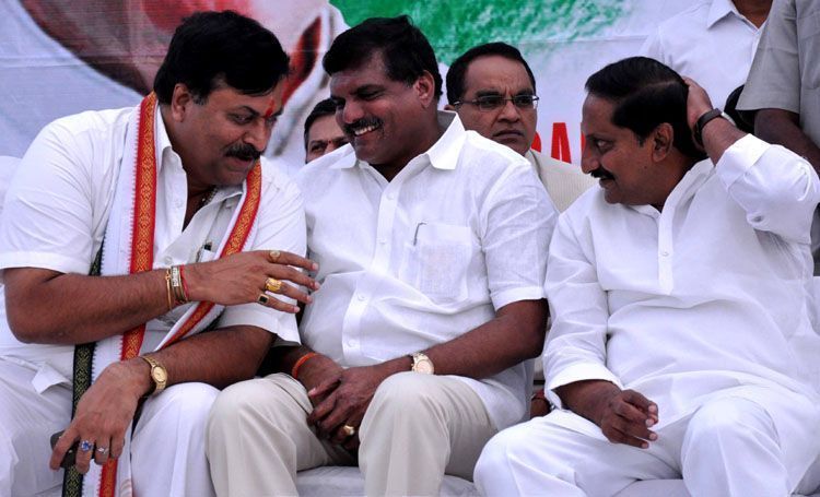 Chief Minister N Kiran Kumar engrossed in a pep talk with other senior leaders of the party while participating in the Rajiv Gandhi Sadbhavana Yatra Commemoration Day function at Charminar here on Friday - INN Photos