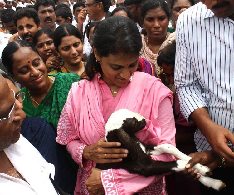 Sharmila talking to women, children as part of a mass contact programme with villagers in her second day of walkathon which began from the outskirts of Vempalli in Kadapa district on Friday.