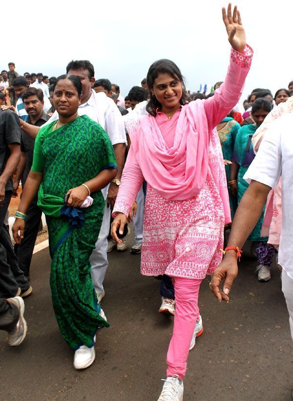 Sharmila talking to women, children as part of a mass contact programme with villagers in her second day of walkathon which began from the outskirts of Vempalli in Kadapa district on Friday.
