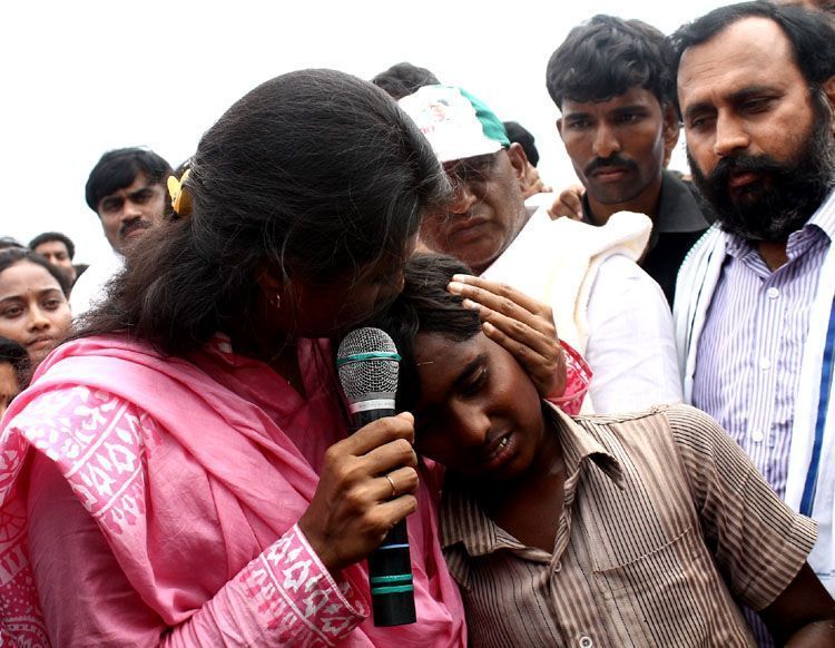 Sharmila talking to women, children as part of a mass contact programme with villagers in her second day of walkathon which began from the outskirts of Vempalli in Kadapa district on Friday.