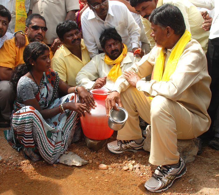 TDP president N.Chandrababu Naidu listening to the woes of a woman during his padayatra in Mahbubnagar district on Wednesday.