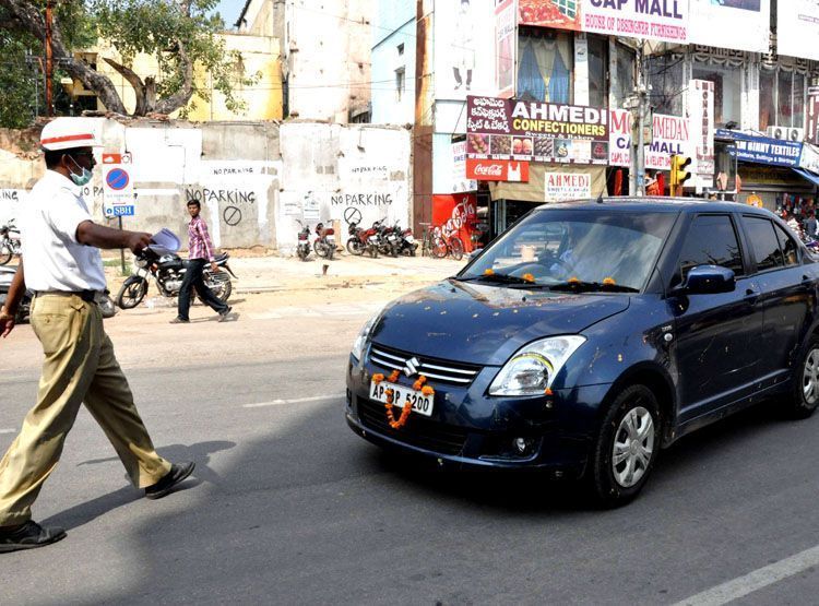 Traffic Police, in view of the Supreme Court orders, launches a massivel drive against four wheel vehicles using black and tinted film on safety glasses in the twin cities of Hyderabad on Thursday - INN Photos