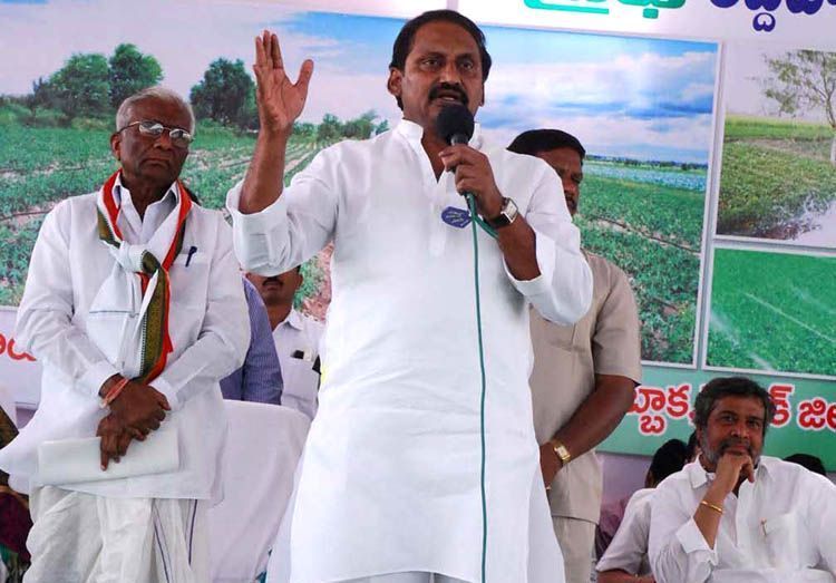 Chief Minister N.Kiran Kumar Reddy addressing a meeting at Dubbaka in Medak dsitrict during his Indiramma Baata on Monday. Deputy Chief Minister Damodar Rajanarasimha is also seen in the picture.
