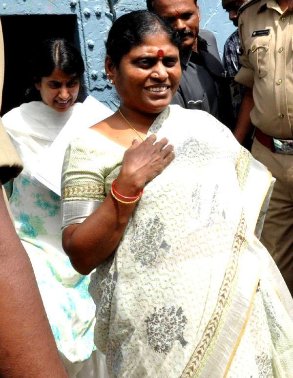 YS Vijayamma and YS Bharati coming out from Chanchalguda Jail after meeting YS Jaganmohan Reddy on Tuesday - INN Photos