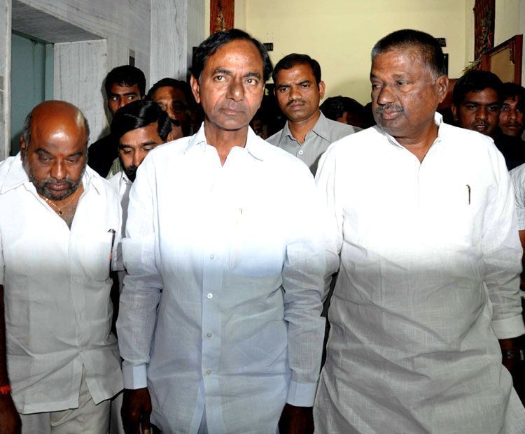 TRS president K Chandrashekar Rao meets TDP MLA from Parigi K Harishwar Reddy at latter's house in Old MLA Quarters here on Tuesday - INN Photos
