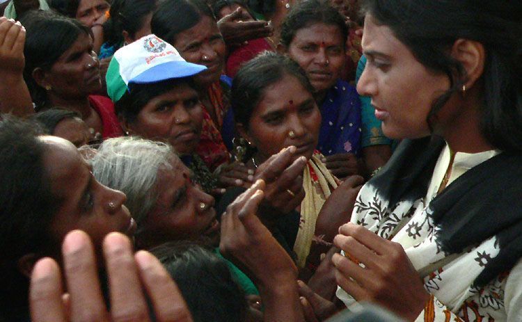 Woman listing out their woes to YSRCP leader Sharmila during her Maro Praja Prasthanam padayatra in Anantapur on Sunday.