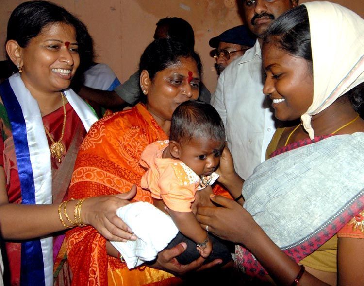 The YSR Congress honorary president Y S Vijayamma visited the flood-hit areas of Gannavaram, Unguturu and Bapulapadu mandals, which were marooned in the flood water of Budameru rivulet.