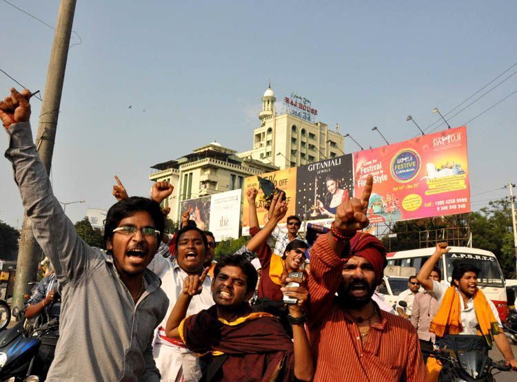 Members of Brahmin community take out rally from Baghamberpet to Nampally on Tuesday demanding ban on film 'Dainikaina Ready' - INN Photos