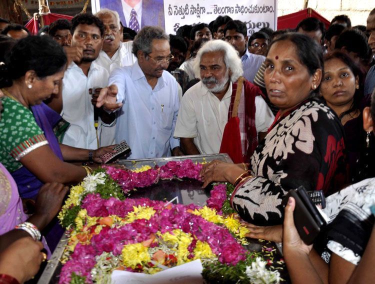 Hundreds of students gathered near OU Arts College where B.Ed student, V Santosh, a native of Kuchalapur of Adilabad district, was found dead hanging by a tree.