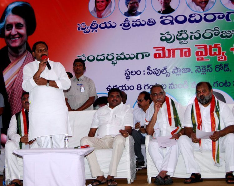 Chief Minister N. Kiran Kumar Reddy speaking at 'Mega Free Health Camp' launched on the occasion of Smt. Indira Gandhi’s birthday celebrations at Peoples Plaza here on Monday.
