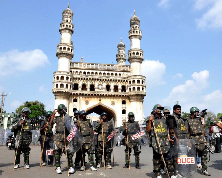 Elaborate security arrangements at Charminar and Mecca Masjid in the old city of Hyderabad inview of the Friday prayers - INN Photos