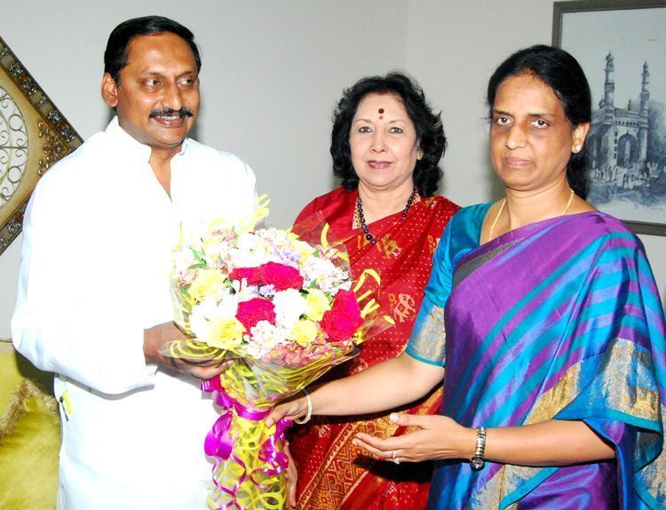 Ministers Geetha Reddy and Sabitha Indra Reddy congratulates Chief Minister N Kiran Kumar Reddy for completion of two years in office at CM's Camp Office at Begumpet here on Sunday - INN Photos