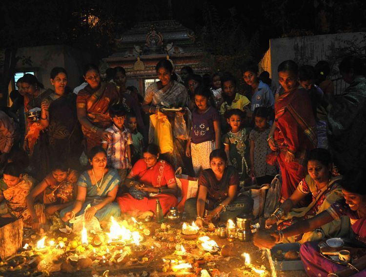 Devotees lighting Kartika Deepam in Uma Maheshwara Temple at Rakshapuram in the Old City on the occasion of Kartika Pournima here on Wednesday - INN Photos
