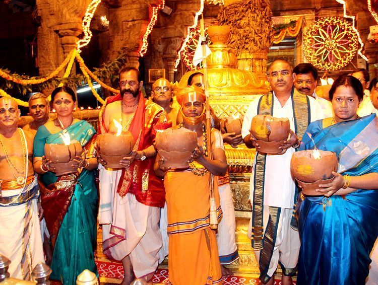 Sri Chinna Jeeyar Swamy, TTD Chairman K.Bapi Raju, EO L.V.Subramanyam and others took part in annual Karteeka Deepam, celebrated inside Sri Vari Temple at Tirumala on Wednesday.