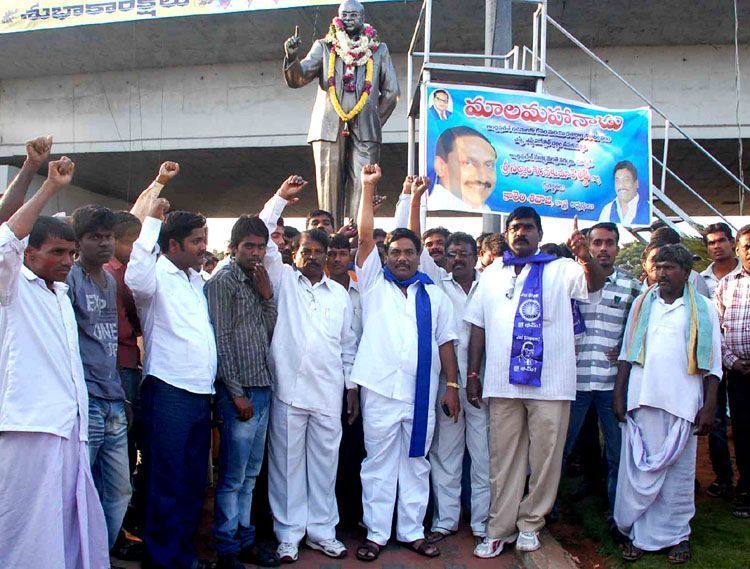 Members of SC, ST organisations celebrate the SC, ST Sub-Plan Bill by garlanding the statues of Dr BR Ambedkar and Babu Jagjivan Ram here on Sunday - INN Photos