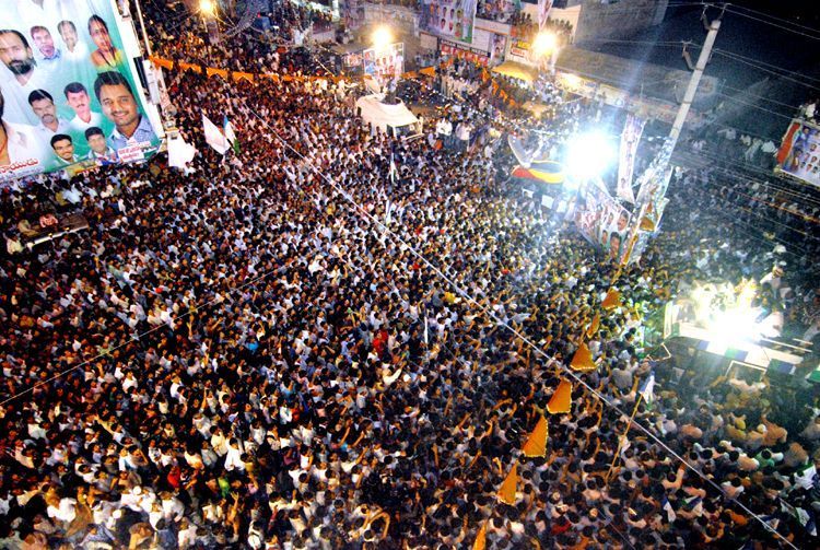 Smt. Sharmila addressing a hugely attended public meeting during her Maro Praja Prasthanam Padayatra at BN Reddy Nagar on the outskirts of the city on Friday.