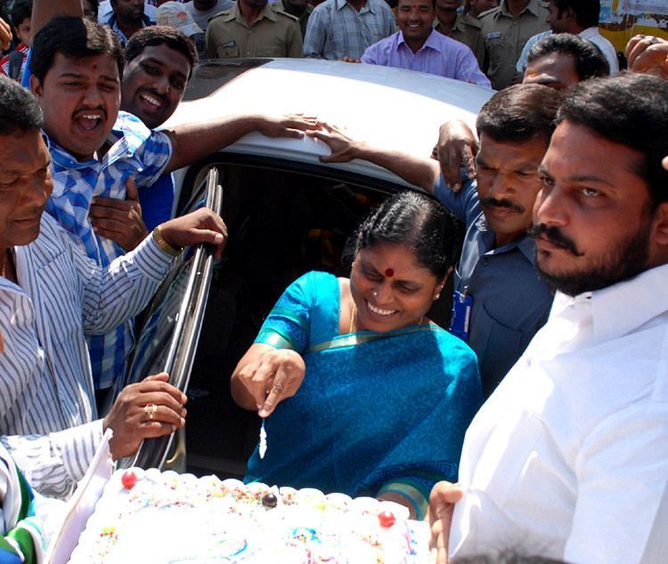 YSRCP leaders and activists celebrates YS Jagan Mohan Reddy's birthday outside the Chanchalguda Jail here on Friday. While mother Vijayamma and wife Bharathi met Jagan at Chanchalguda Jail, activists organised blood donation camps and other activities on the occasion - INN Photos