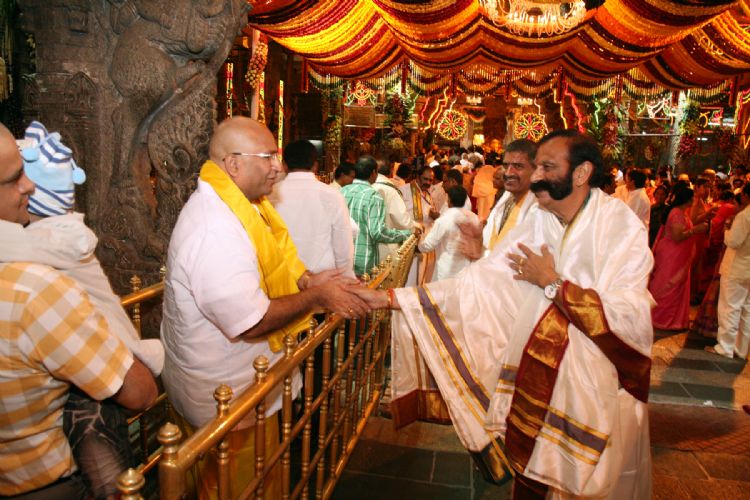 Union Minister for Tourism K.Chiranjeevi, Endowment Minister of AP Ramachandraiah, High Cour Judge Appa Rao offered prayers to Lord Venkateswara at Tirumala on Vaikunta Ekadasi Day. TTD Chairman K.Bapi Raju and TTD EO L.V.Subramanyam welcomed the dignitaries.