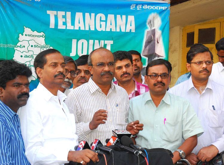 Telangana JAC leaders addresses media persons soon after conclusion of all party meet held at Delhi at TJAC office in Adarsh Nagar here on Friday - INN Photos