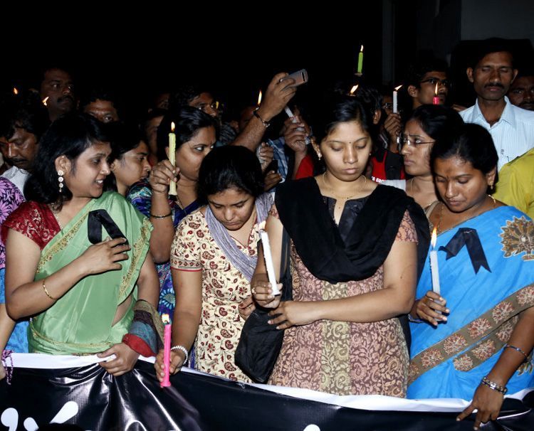 Union Minister for Tourism K.Chiranjeevi and his fans participating in the candle light vigil to condole the death of Delhi gang rape victim in Hyderabad on Monday.
