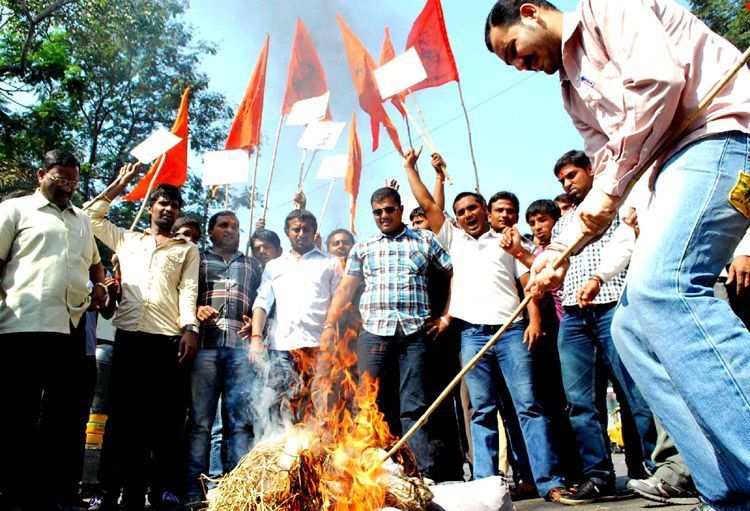 VHP activists burn the effigy of MIM floor leader Akbaruddin Owaisi at Koti here on Saturday - INN Photos