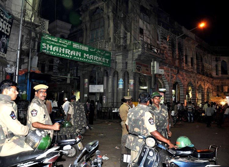 Security personnel take over the streets of Old City after closing the shops and establishments after the arrest of MIM leader Akbaruddin Owaisi here on Tuesday - INN Photos