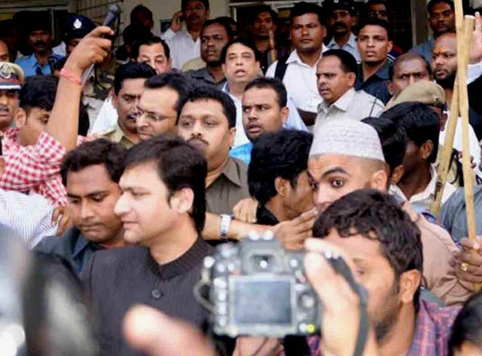 Police arrest MIM MLA and floor leader in the Assembly Akbaruddin Owaisi at Gandhi Hospital here on Tuesday after hours of highdrama as followers of MIM gathers in large number near hospital protesting their leaders arrest - INN Photos