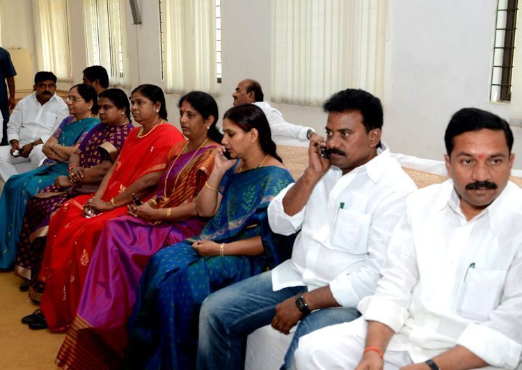 Congress Seemandhra leaders meet at Ministers' Quarters while pro-Telangana activists stage protest here on Thursday - INN Photos