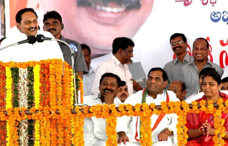 Chief Minister N.Kiran Kumar Reddy speaking at a public meeting held in Narsapur of Medak district on Wednesday.