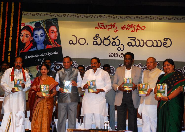Governor ESL Narasimhan realease the Telugu translation of book “Sri Ramayana Visesham” authored by Petroleum Minister Verappa Moily at Ravindra Bharati here on Sunday - INN Photos