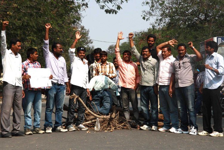 Osmania University students protest in OU campus here on Monday - INN Photos