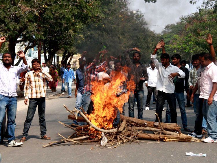 Osmania University students protest in OU campus here on Monday - INN Photos