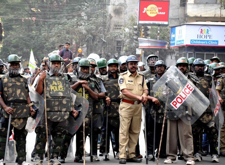 Elaborate police bandobust at Indira Park in view of Samara Deeksha here on Monday - INN Photos